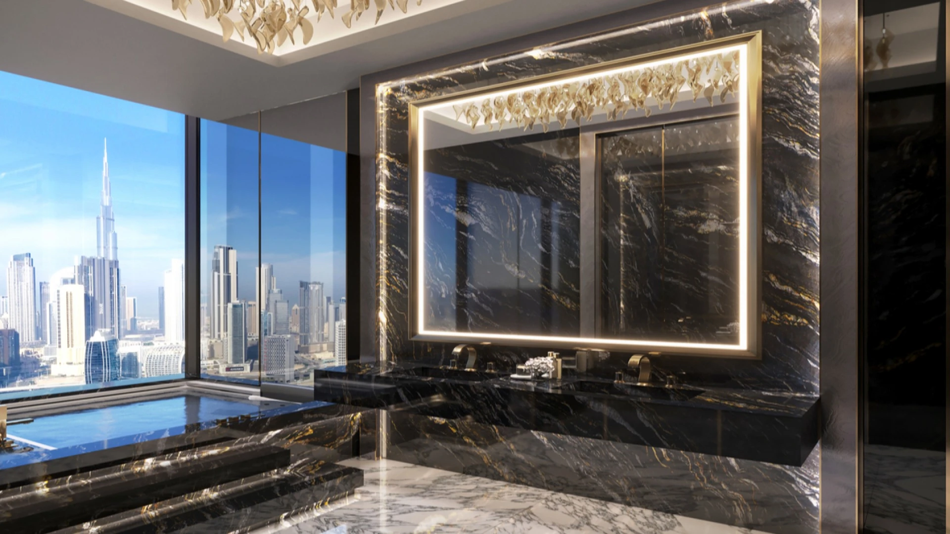Panoramic views of Burj Khalifa or Dubai Creek Harbour